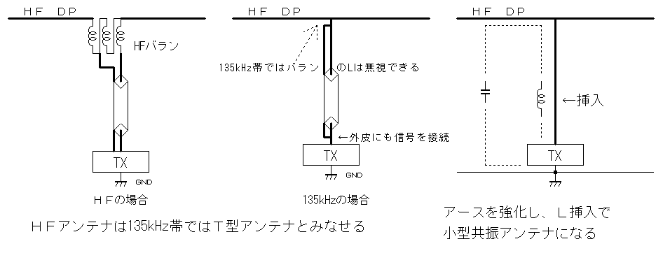 何故なら、HF用バランは、LFではインダクタンスが不足し、単なる接続点としてしか