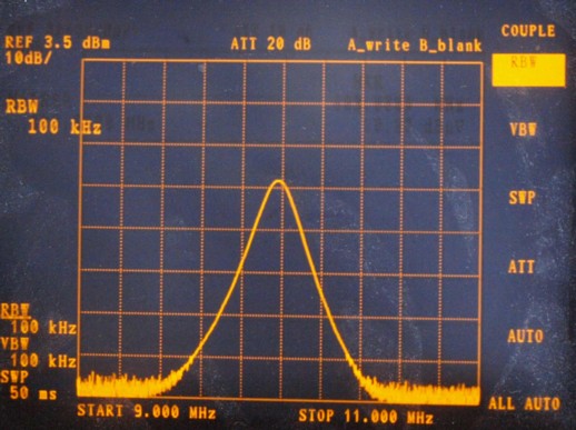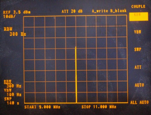 ちなみに、スペクトルの観測では、ちょっと設定を変えるだけで印象を変える事ができます。これは高周波信号の例!